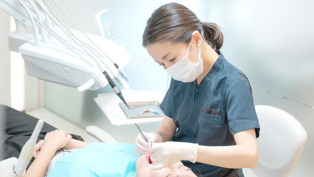 私たちの予防歯科では、口腔衛生のプロである歯科衛生士が、時間をたっぷり確保して丁寧にプロフェッショナルなクリーニングをご提供。細かな部分までしっかりとケアした上で、歯の根の虫歯予防につながるフッ素塗布も実施しています。