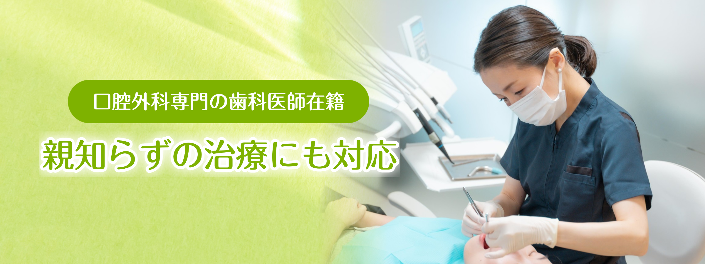 当院の口腔外科は、月に1回程度、日本口腔外科学会認定「口腔外科専門医」資格を持つ歯科医師が治療を担当。親知らずの抜歯ほか、さまざまな口腔外科の症例に対応しています。