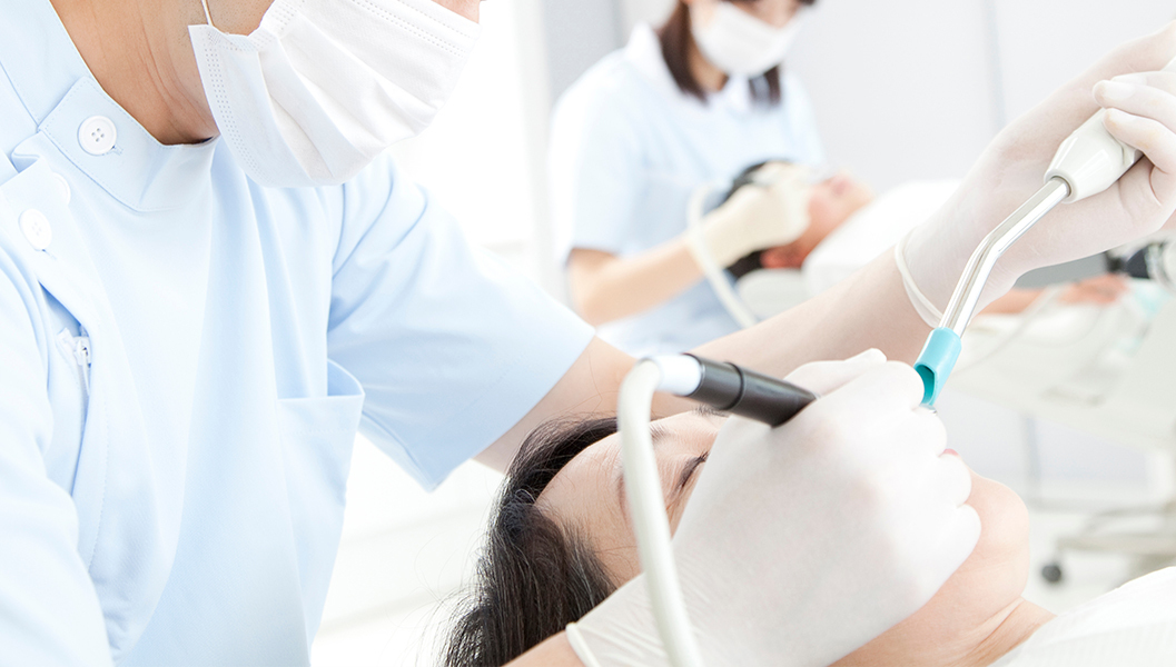 使い捨てにできない治療器具は、汚染の原因となる血液や唾液をしっかりと洗い流し、消毒・滅菌を徹底。さらに、治療中にお口の外へ飛び散る水や唾液などを吸引する「口腔外バキューム」も設置し、院内感染対策に努めています。