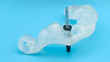 まず歯科用CTによる検査を実施し、あごの骨の厚みや高さ、神経・血管の位置を把握します。次に専用のソフトを用いて、インプラントを埋め込む位置や方向などのシミュレーションを実施。その後、シミュレーションデータを元に、計画通りにインプラントを埋め込むための「サージカルガイド」と呼ばれる装置を製作します。