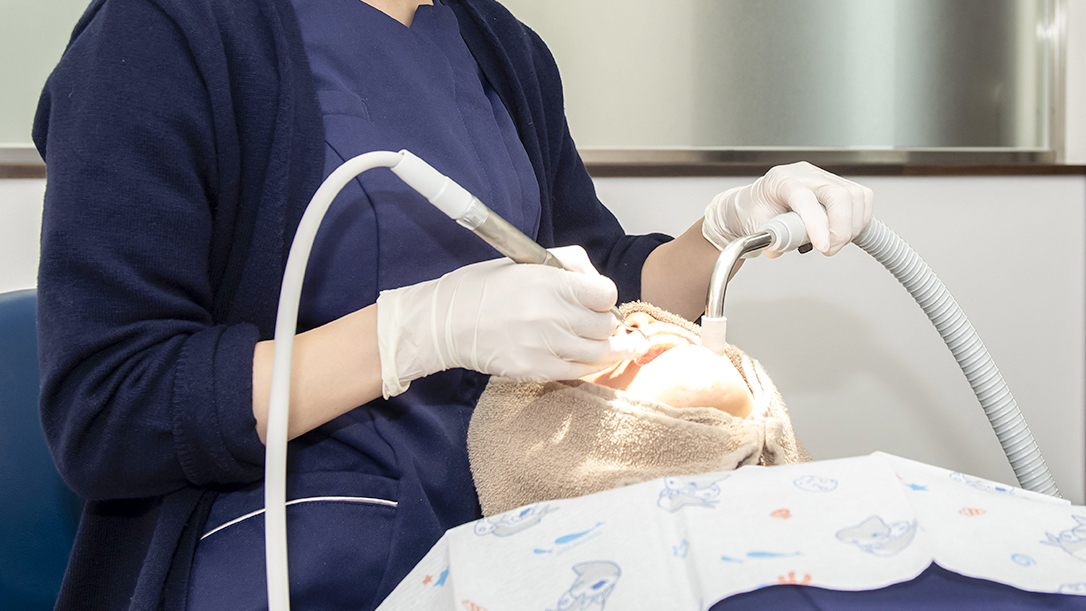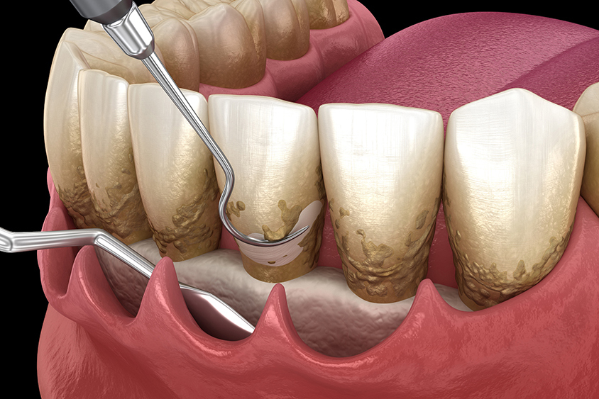 歯周病の原因となる歯石やプラーク(歯垢)を、専用の器具を使って取り除きます。