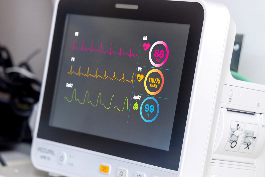 そのため、心拍数や体温、血圧、酸素飽和度、心電図を常に測定・記録できる生体モニターを導入しています。